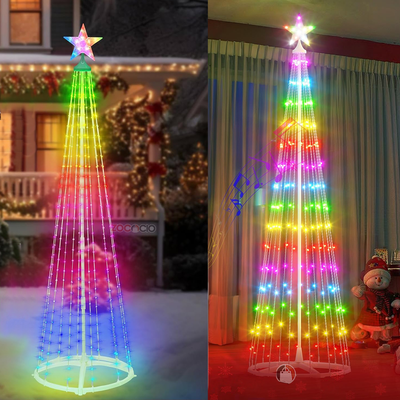 Fácil de armar, liviano y con un diseño cónico espectacular, este árbol es perfecto para decorar exteriores o interiores con un toque moderno y tecnológico. Su app inteligente te permite controlar miles de modos de iluminación, personalizar colores, crear efectos únicos y diseñar escenas mágicas desde tu celular.