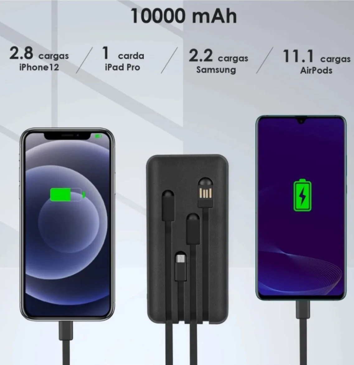 LA POWER BANK TRAE CABLE PARA :TIPOC,V8 Y IPHONE