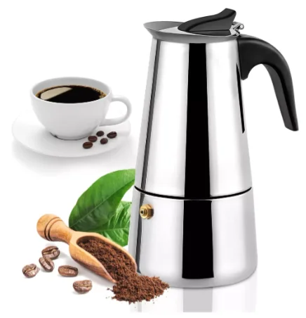 Cafetera de tamaño opcional: cafetera espresso moka, con una apariencia exquisita y se pueden seleccionar 2 tamaños diferentes de ollas, lo que la hace práctica y elegante.