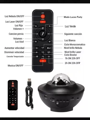 🌈 Proyección dinámica 360° con luces LED multicolor y láser tipo galaxia.