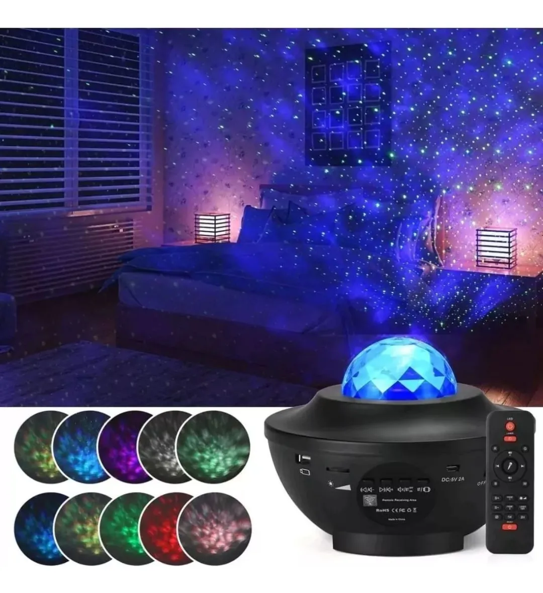 Convierte tu habitación en un universo de ensueño con este Proyector LED con Parlante Bluetooth integrado, ideal para relajarte, ambientar fiestas o acompañar tus noches con un cielo estrellado en movimiento.